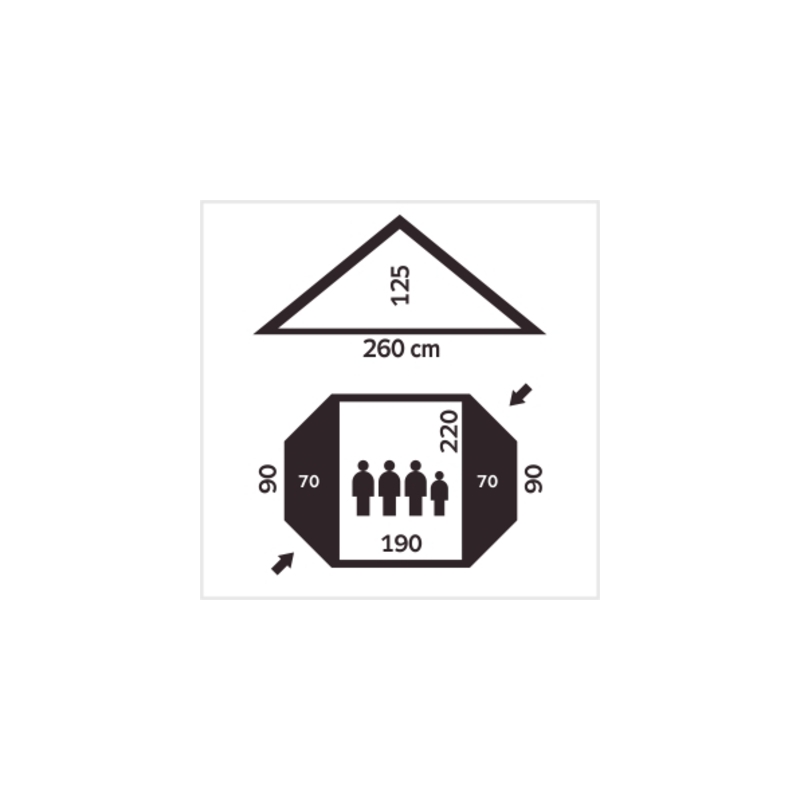 Stan pro 3-4 osoby se dvěma vchody a prostornými předsíněmi pro vaření a uskladnění batohů.
