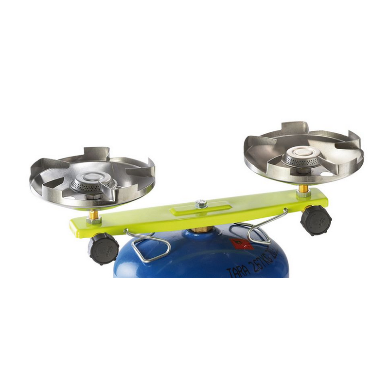 Campingový vařič na propan-butan pro turistické účely. Vařič je připojen přímo k 2kg propan-butanové lahvi. Tato lahev není součástí balení.
