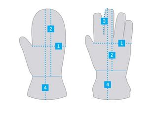•  Velikost 6 (vnitřní šířka rukavice 1 = 9,5 cm, vniřní délka rukavice k zápěstí 2 = 14 cm, celková délka rukavice 4 = 24 cm)