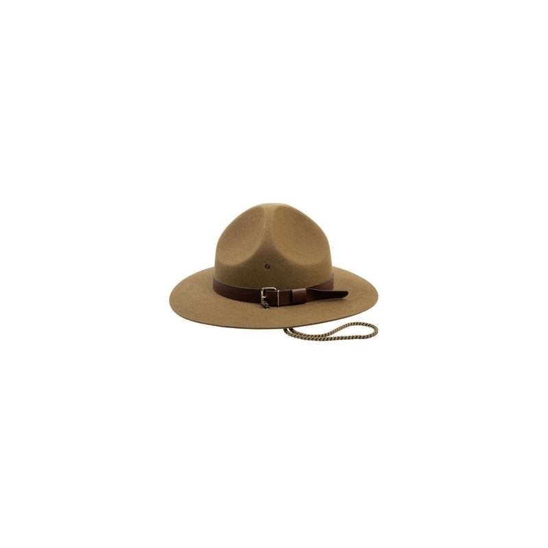 Skautský klobouk, zdobený koženým páskem s přeskou a kroucenou podbradníkovou šňůrou. Komfort nošení zvyšují vzdušníky a vnitřní kožený potní pásek.