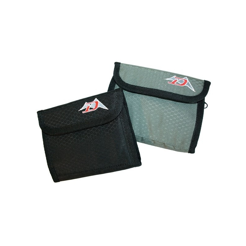 Látková peněženka od značky Doldy se šesti malými kapsičkami, jednou síťovanou kapsou a kapsou na mince, zavíratelnou zipem.