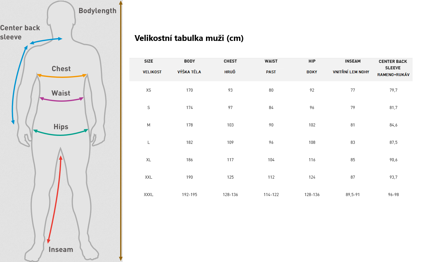 Velikostní tabulku najdete v dokumentech pro stažení i mezi obrázky.