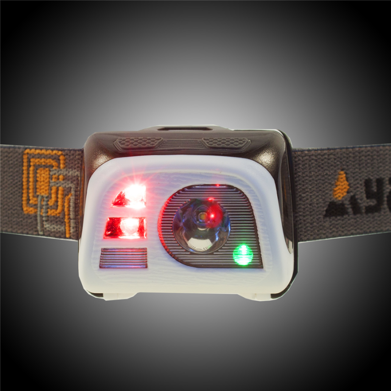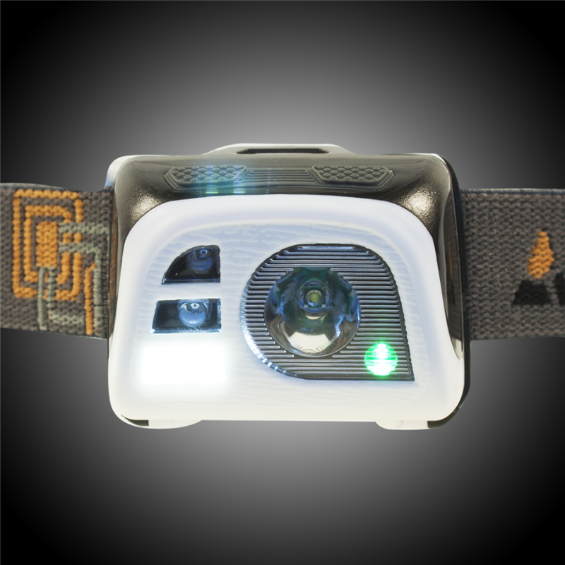 Využijete ji při turistice, běhu, jízdě na kole, táboření, rybaření nebo při venčení psa. Svítilna je vybavena třemi světelnými zdroji: výkonnou diodou 3W XPE (140 lm), dvěma červenými LED diodami a bílou SMD LED, která bohatě stačí na chůzi a významně šetří baterii. Stav baterií indikuje zelená LED dioda vpravo dole. Odolná proti stékající vodě.