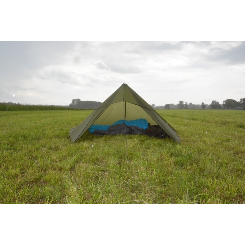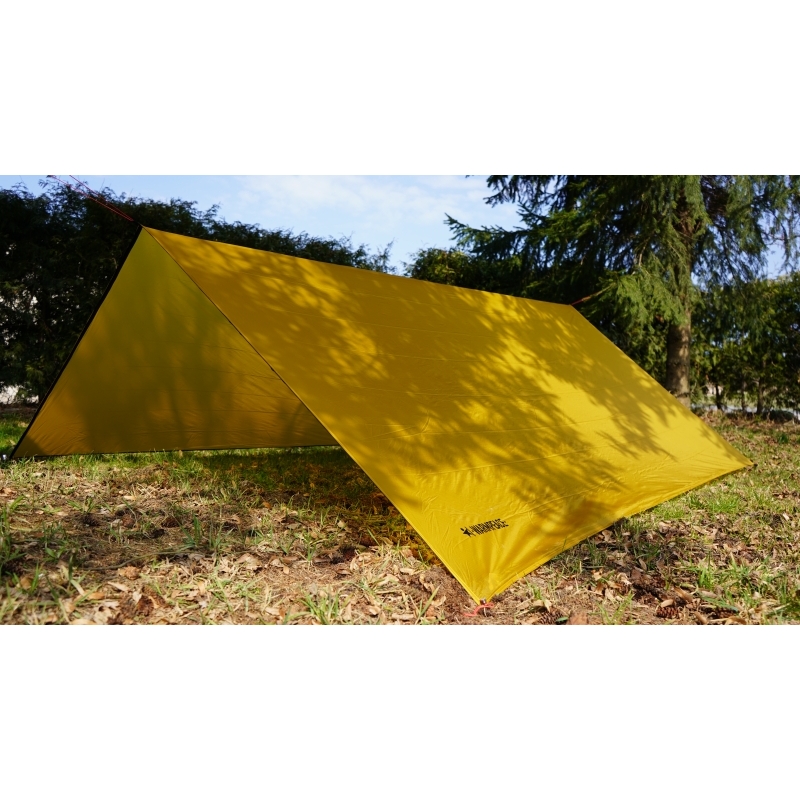 Velmi lehká plachta Shelter české firmy Warmpeace je nylonová univerzální plachta (včetně kolíků a šňůr), která poslouží jako přístřešek mnoha rozmanitých tvarů, jako klasické áčko i jako nouzová plachta na přikrytí.