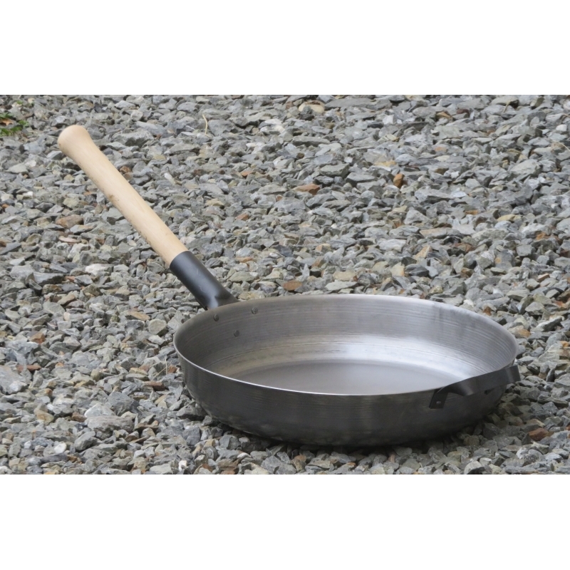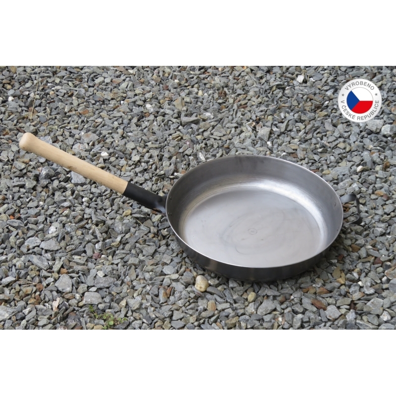 Dřevěné madlo pevně přidělané k pánvi zajišťuje výbornou manipulaci. Tu podporuje i úchyt na opačné straně pánve.