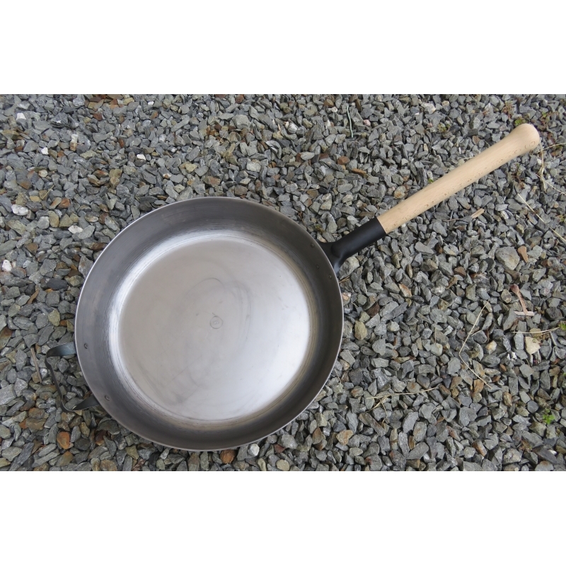 Plech je zesílen, aby se pánev na rozžhavených kamnech "nekroutila".