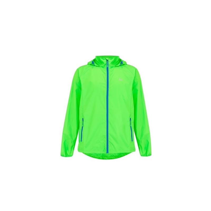 Lehká, vodotěsná a prodyšná bunda se sbalitelnou kapucí, reflexním logem na prsou, s kapsami a pružnými manžety.