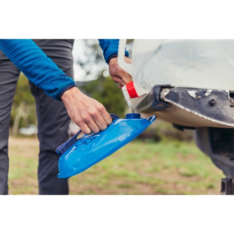 Po sejmutí horní krytky hlavního úzavěru se dostanete ke speciálnímu ventilu, který po zavěšení vaku například na strom (popruh je součástí balení) bude sloužit stejně dobře jako vodovodní kohoutek.
