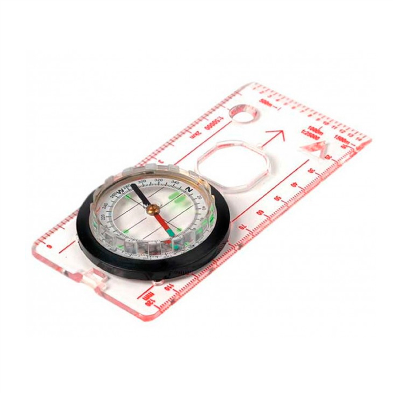 Klasická buzola s kompasem - nezbytný nástroj pro přežití ve volné přírodě a na horách. Spolu s mapou pomáhá se správnou navigací a orientací v terénu. Na zaoblené základně buzoly najdete otočné kolečko kompasu s luminiscenčními body označujícími světové strany: sever - N (North), jih - S (South), východ - E (East) a západ - W (West) a poledníkové linie. Luminiscenční (svítící) body usnadňují práci ve tmě. Vyvážená kovová střelka kompasu v kapalinové kapsli (červená šipka) ukazuje na severní magnetický pól Země. Základní deska obsahuje také zvětšovací čočku, otvory pro zakreslování kontrol a měřítko v milimetrech. Součástí je žlutá šňůrka pro zavěšení na krk.