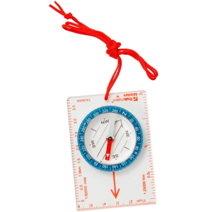 Buzola s kompasem na průhledné plastové základně. Spolu s mapou pomáhá buzola se správnou navigací a orientací v terénu. Na základně buzoly se nachází otočné kolečko s luminiscenčními body označujícími světové stranya poledníkové linie. Vyvážená kovová střelka je v kapalinové kapsli a ukazuje na severní magnetický pól Země. Základní deska obsahuje měřítko v milimetrech. Součástí je šňůrka pro zavěšení na krk.