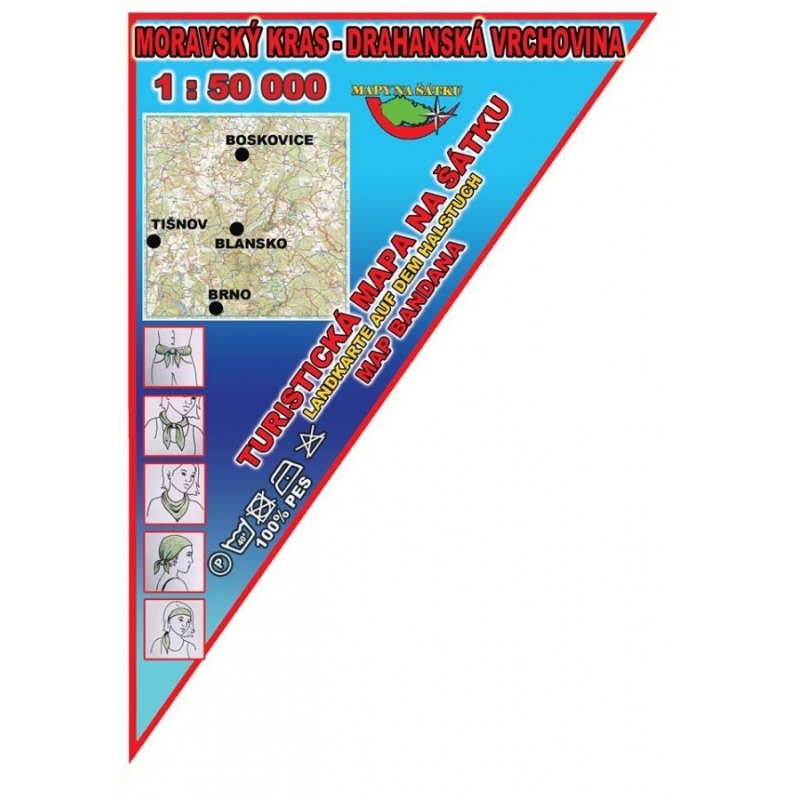 Mapa na šátku je vytištěná mapa na polyesterovém hedvábí. Na okraji mapy se nachází měřítko, název mapy, legenda v češtině, angličtině a němčině a prací symboly. Nevadí jí špatné počasí. Můžete ji zmačkat, použít jako šátek, opasek, obinadlo... A v případě znečištění ji lze vyprat.