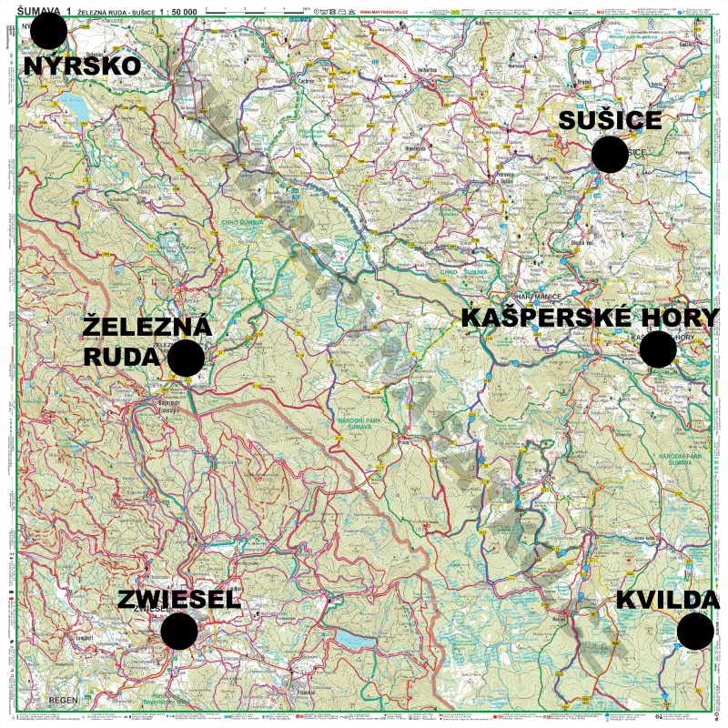 Mapa na šátku je vytištěná mapa na polyesterovém hedvábí. Na okraji mapy se nachází měřítko, název mapy, legenda v češtině, angličtině a němčině a prací symboly. Nevadí jí špatné počasí. Můžete ji zmačkat, použít jako šátek, opasek, obinadlo... A v případě znečištění ji lze vyprat
