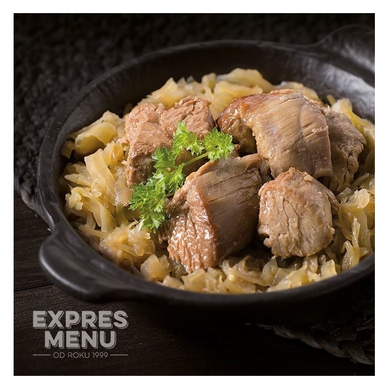 Složení: zelí hlávkové bílé (60 %), krůtí maso (33 %), cibule, olej řepkový, sůl kamenná, kmín