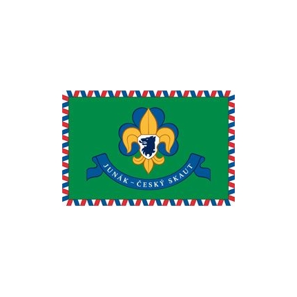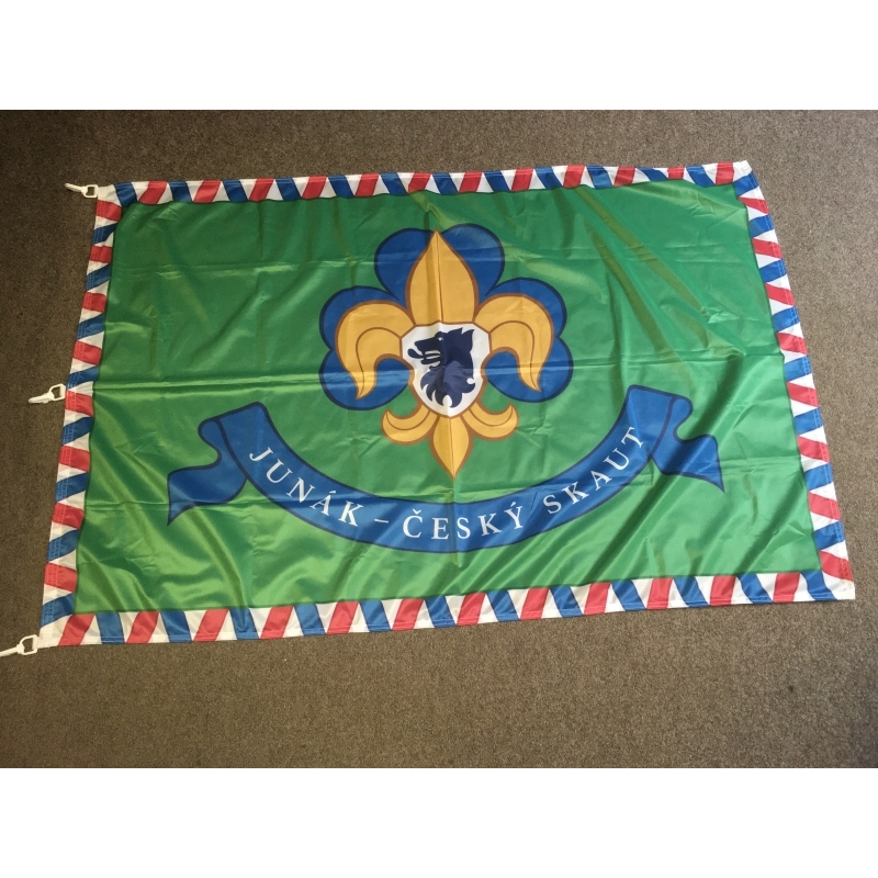 Vlajka Junák - český skaut s třemi plastovými uchyty.