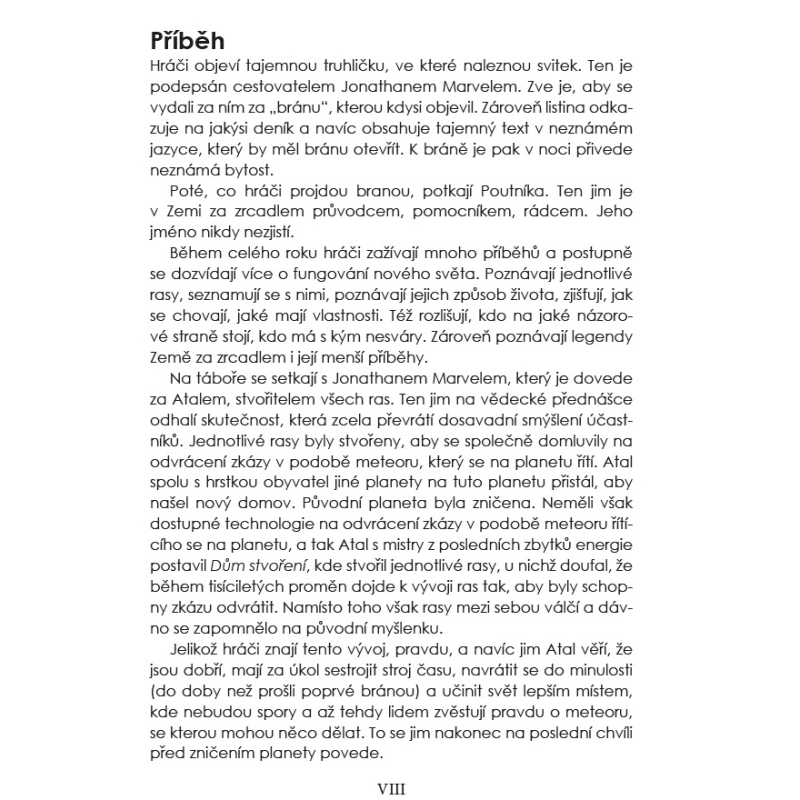 Celý děj se odehrává v Zemi za zrcadlem. Účastníci hry si myslí, že se příběh odehrává v jakémsi prapodivném fantasy světě, do kterého se dostali tím, že prošli portálem. V našem případě bránou do jiného světa. Až v závěrečné fázi hry účastníci zjistí, že legendami opředené světy mají svůj racionální základ v hluboké minulosti. A to v minulosti, ve které se nyní nachází „naše“ lidstvo na planetě Zemi. Tedy ve chvíli, kdy čtete tyto řádky.