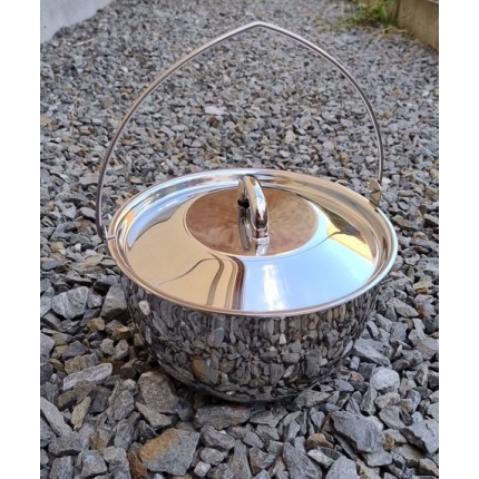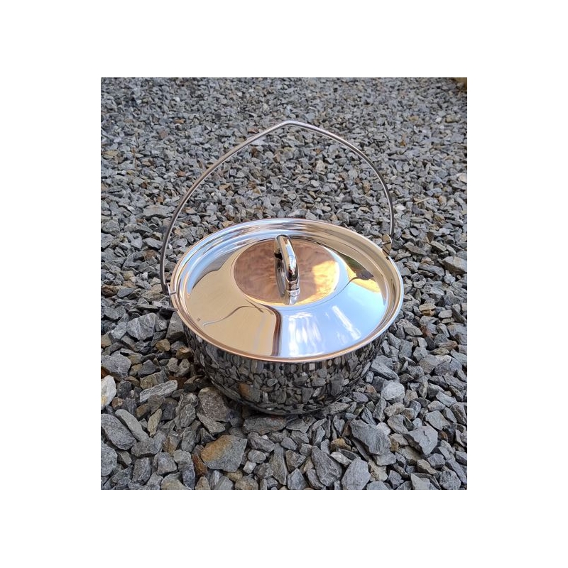 Čtyřlitrový nerezový kotlík s nerezovou pokličkou vyrobený v České republice. Klasická velikost je vhodná pro trampy, na vandry, na táboření, nebo i na chatu. Využijete na ohni, kamnech i vařičích.