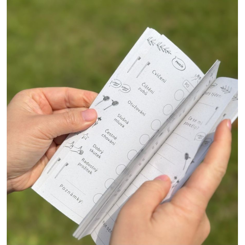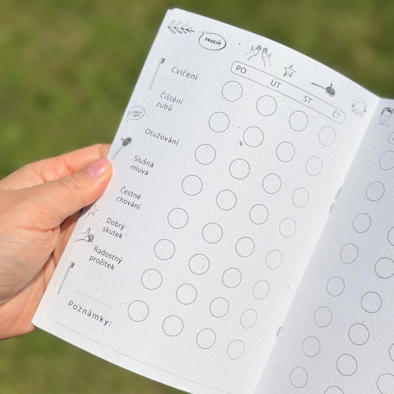 • umožňuje přehledné sledování pokroku (záznamy, samolepky)